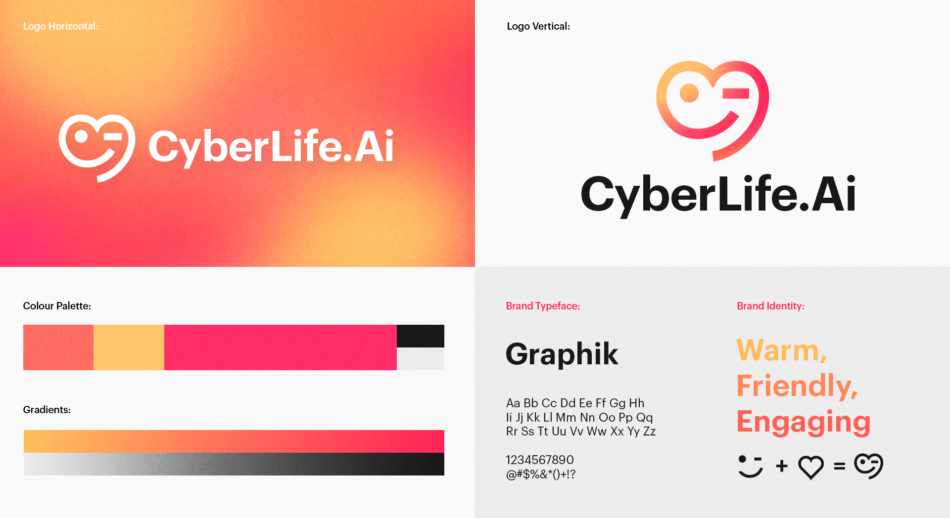 Created a few branding options for CyberLife, local tech start up. CyberLife's AI assistants allow patients to spend their time in the waiting room answering routine questions so that the doctors can conduct a more personalised check-up when they see the patient.